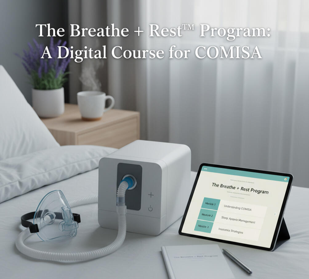 The BREATHE + REST™ Program is a 6-week digital course for people with COMISA—co-occurring insomnia and sleep apnea. Get step-by-step guidance, practical tools, and expert strategies to improve sleep, manage insomnia, and optimize CPAP therapy—whether you’re new or experienced.